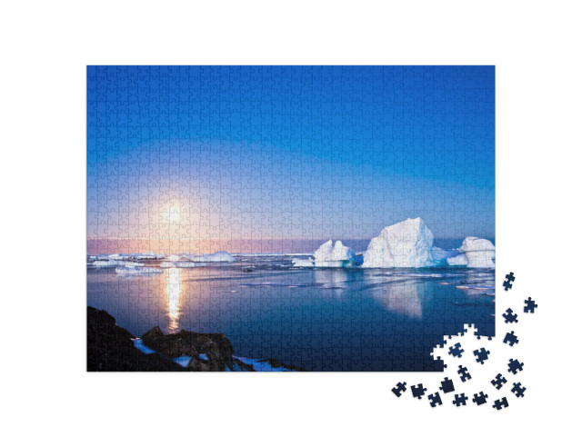 puzzle „Antarktida za letní noci, ledové hory a měsíční svit“