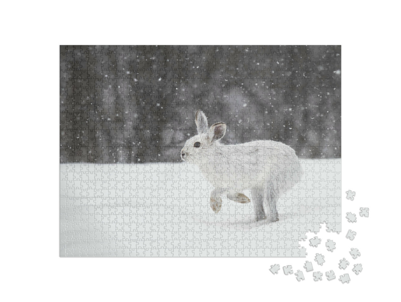 puzzle „Bílý horský zajíc v kanadské zimě“