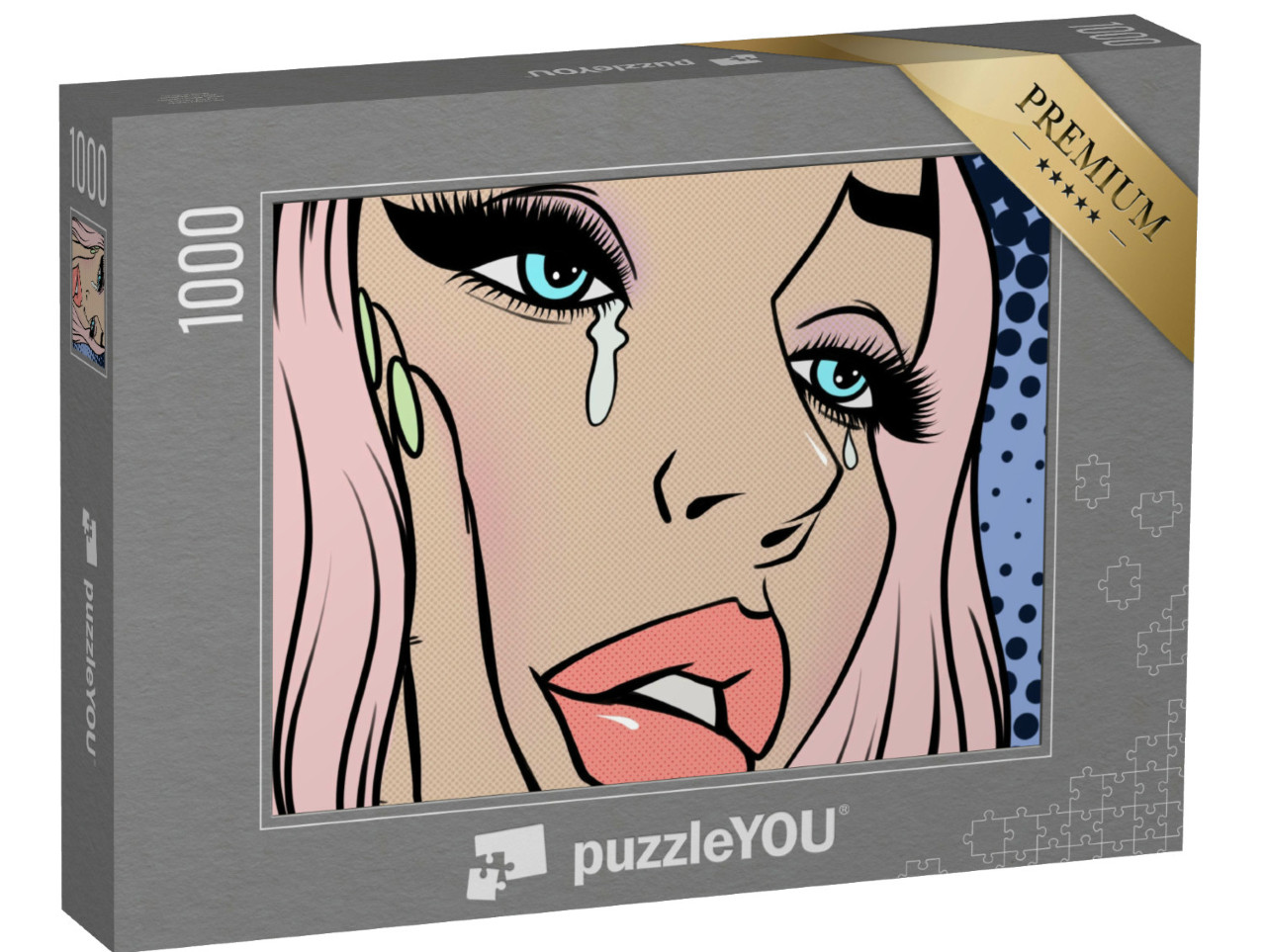 puzzle „Dívka s růžovými vlasy pláče“