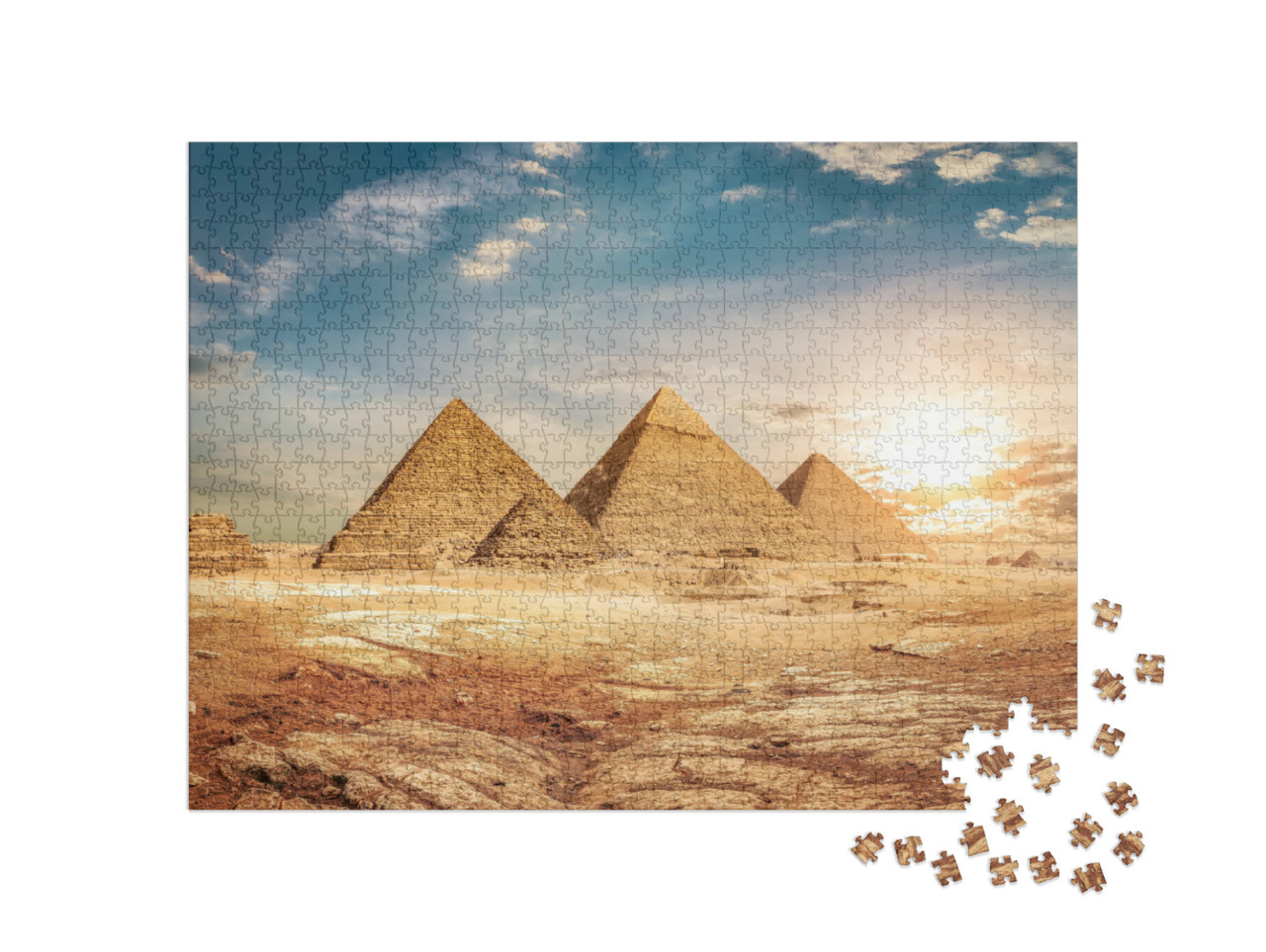 puzzle „Egyptské pyramidy s písečnou pouští a oblohou“