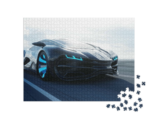 puzzle „Futuristický elektromobil se prohání pouští“