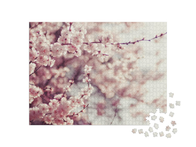 puzzle „Jemné růžové květy třešní na jaře“