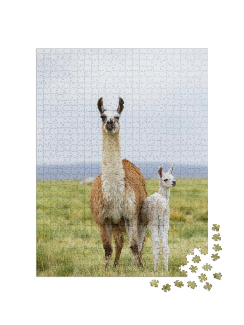 puzzle „Lama s mládětem na Altiplanu v Bolívii“