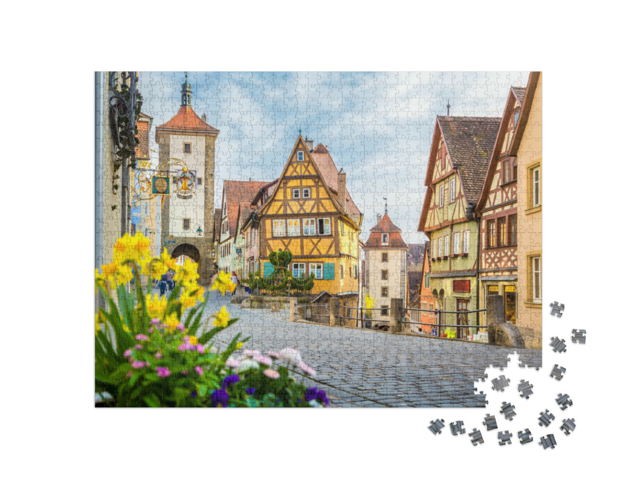 puzzle „Město Rothenburg ob der Tauber s rozkvetlými květinami, Německo“