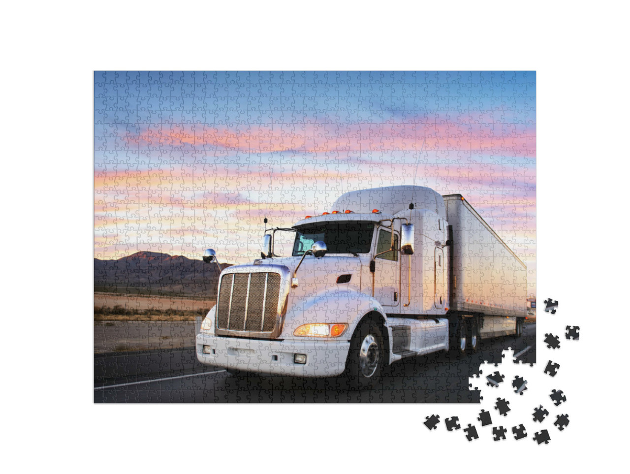 puzzle „Nákladní auto jedoucí při západu slunce“