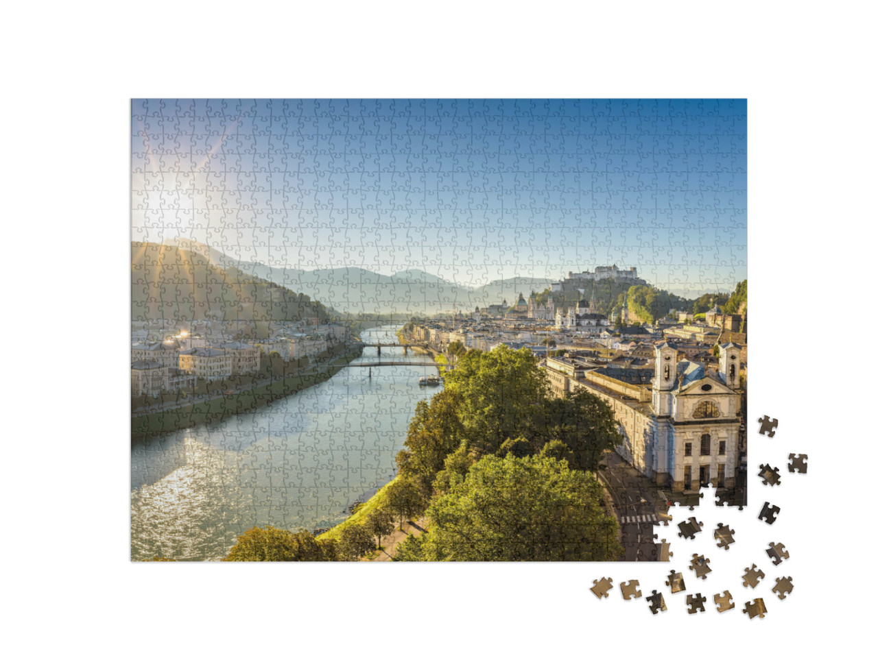puzzle „Panoramatický pohled na Salcburk za letního rána, Rakousko“