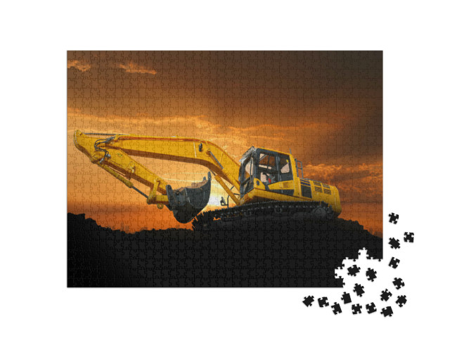 puzzle „Pásové rypadlo na staveništi při západu slunce“