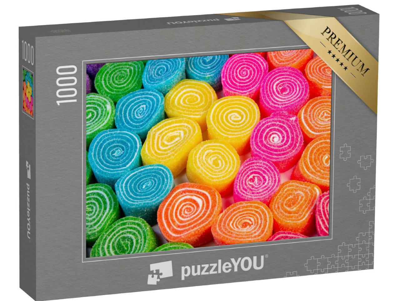 puzzle „Pestrobarevné cukrové spirály v modré, oranžové, růžové, žluté a zelené barvě“
