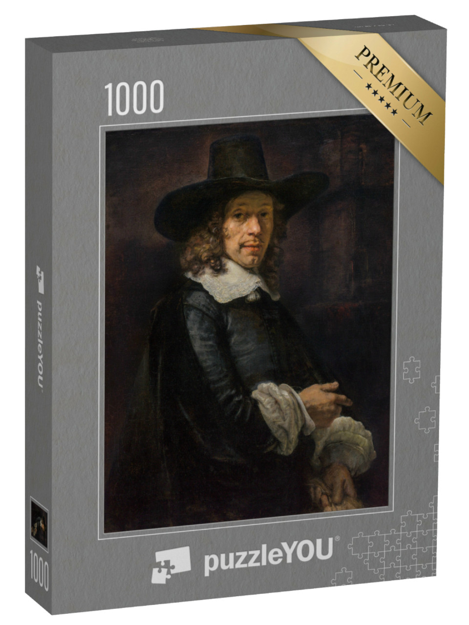puzzle „Rembrandt - Portrét gentlemana s velkým kloboukem a rukavicemi“