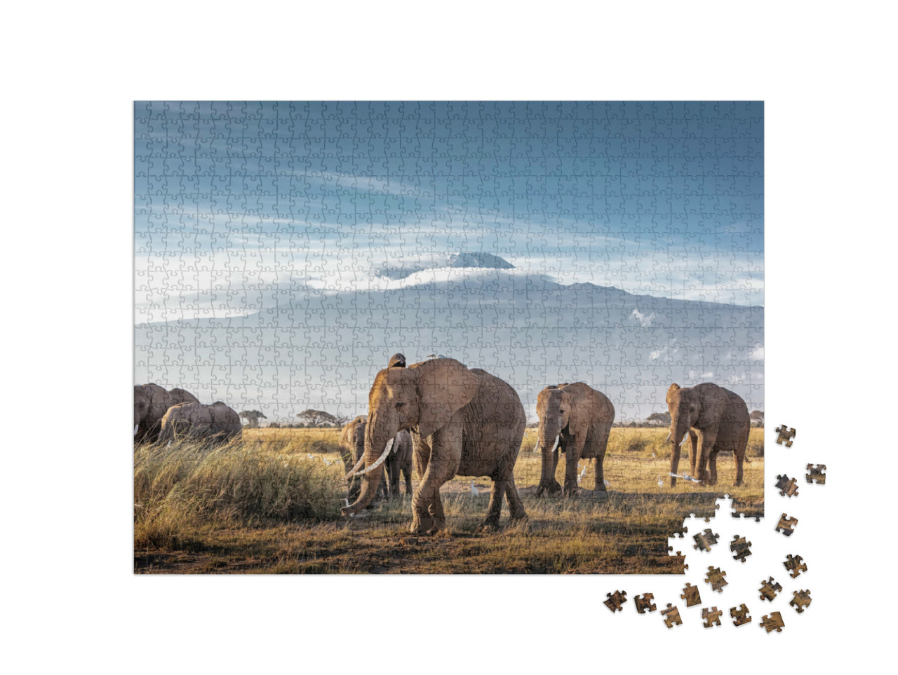 puzzle „Stádo afrických se prochází před horou Kilimandžáro, Keňa, Afrika“