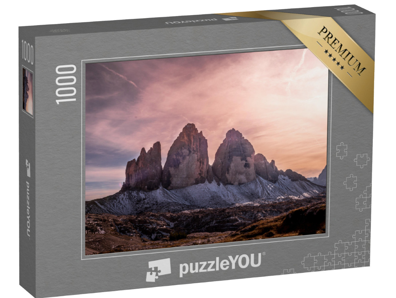 puzzle „Tři vrcholy v národním parku Sesto, západ slunce v Dolomitech“