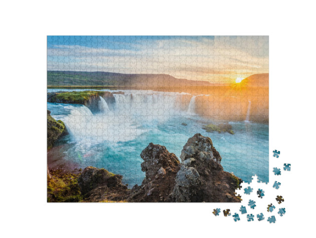 puzzle „Vodopád Godafoss při západu slunce, Island“