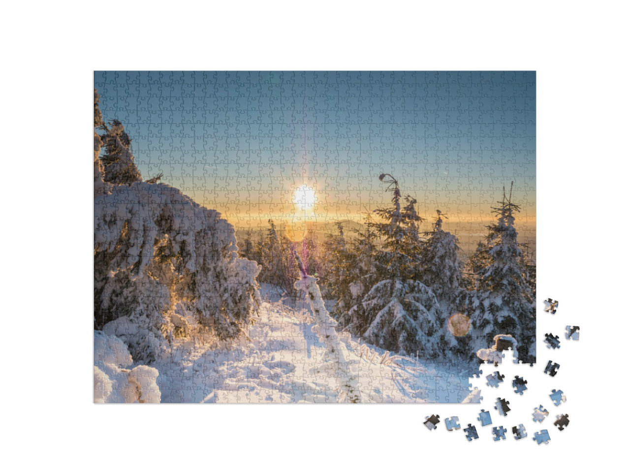 puzzle „Západ slunce v zimních Krušných horách, Německo“