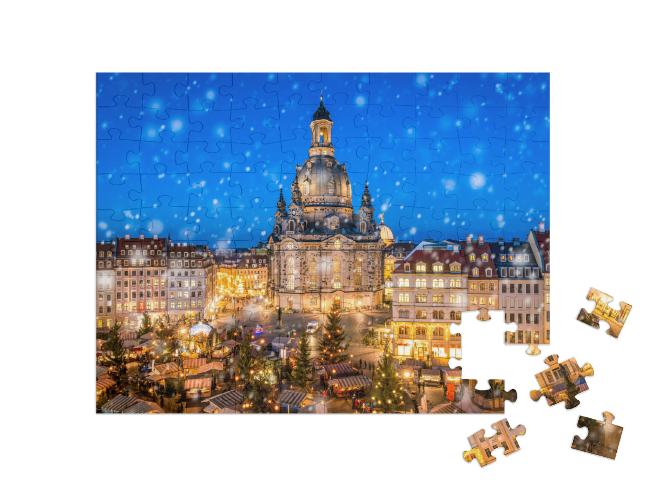 puzzle „Vánoční trh před kostelem Frauenkirche na Neumarktu, Drážďany, Německo“