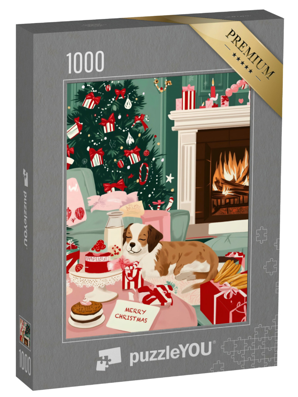 puzzle „Pes si užívá Štědrý večer u ohně“