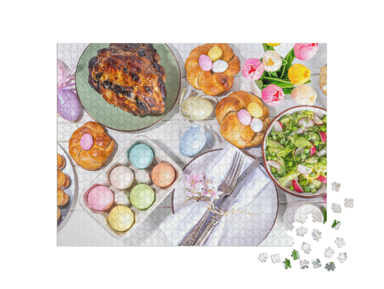 puzzle „Velikonoční čokoláda s čokoládovými zajíčky a velikonočními vajíčky“